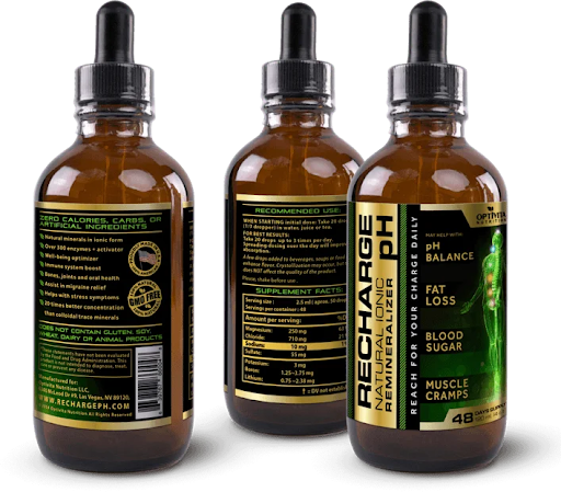 Recharge pH is a natural mineral in ionic form. Recharge pH replenishes mineral deficiencies in your body with minerals in the most bioavailable forms.